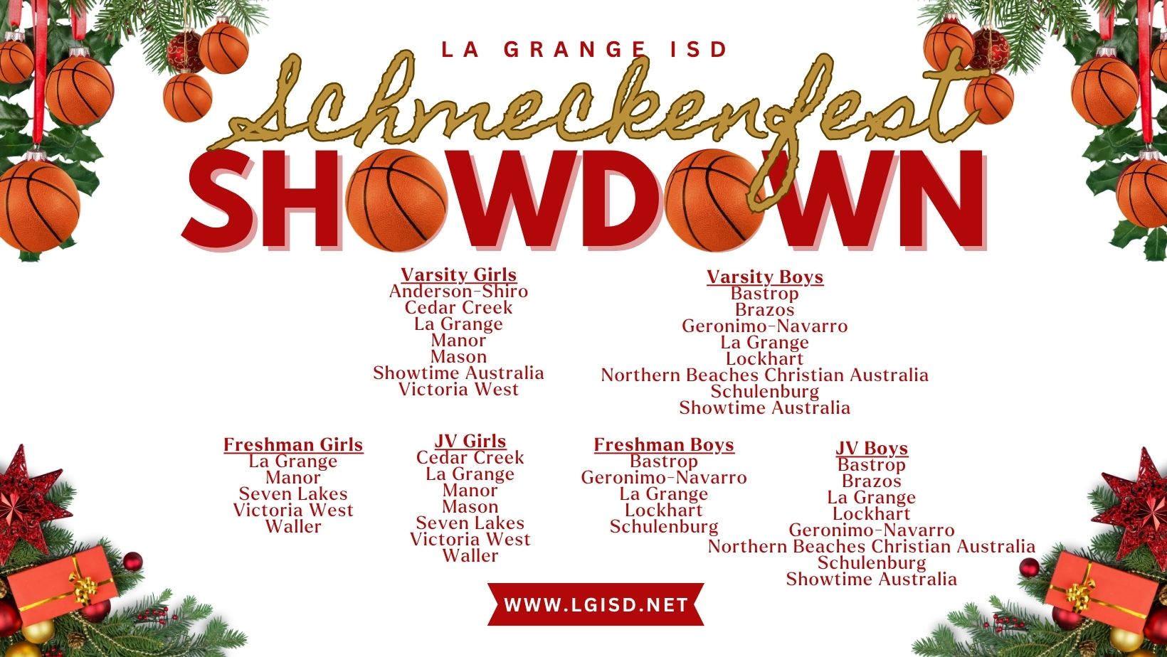 The tournament coincides with one of La Grange's favorite traditions - Schmeckenfest, Our annual Christmas celebration is held on Thursday, December 4. We will conclude Thursday's games early to allow teams, coaches, and fans to head downtown to enjoy the festivities.